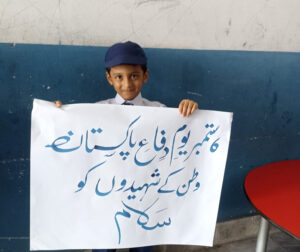 ادارے کے پرنسپل عامر سرفراز کیانی نے معزز اساتذہ کے ساتھ طلباء و طالبات کے اجتماع سے خطاب کرتے ہوئے یوم دفاع کی اہمیت پر زور دیا اور بتایا کہ یہ کس طرح قوم کے ہیروز کے غیر متزلزل حوصلے، لگن اور وطن سے محبت کی یاد دہانی کا کام کرتا ہے۔ ایک ویڈیو پریزنٹیشن کے ذریعے شہداء کو خصوصی خراج عقیدت پیش کیا گیا جس میں ان کی بہادری اور قربانیوں کی داستانوں کو اجاگر کیا گیا۔ تقریب کا اختتام ملک کی خوشحالی، امن اور استحکام کی دعا کے ساتھ ہوا۔اسکول اور کالج انتظامیہ نے طلباء کی شاندار پرفارمنس پر ان کی تعریف کی اور امید ظاہر کی کہ اس طرح کی تقریبات آنے والی نسلوں کو اپنے ملک سے محبت اور تحفظ کی ترغیب دیتی رہیں گی۔